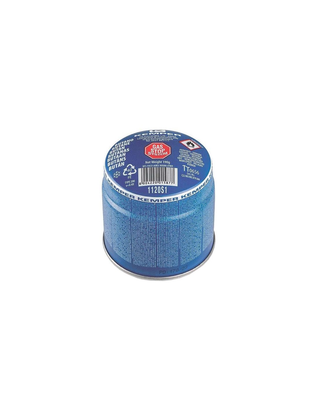 Bomboletta gas butano a forare - Dotata di bloccaggio di sicurezza per limitare la fuoriuscita del gas dal foro - Utilizzata con lampade - fornelli - saldatori - Conforme alla norma EN 417 2012 - Capacità 190gr - Confezione 36pz - Vendibile solo in Sardegna
