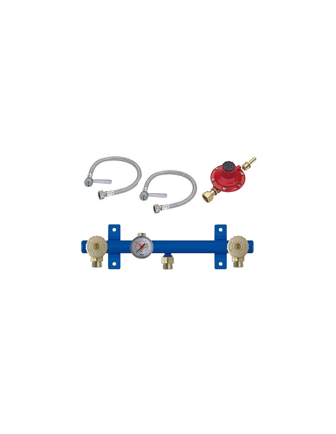 Ingresso W20x1/14” sinistro - Uscita W20x1/14” sinistro - Conformità alla UNI 7131 - Completa di regolatore bassa pressione 4Kg/h taratura regolabile - Con 2 flessibili da 50cm