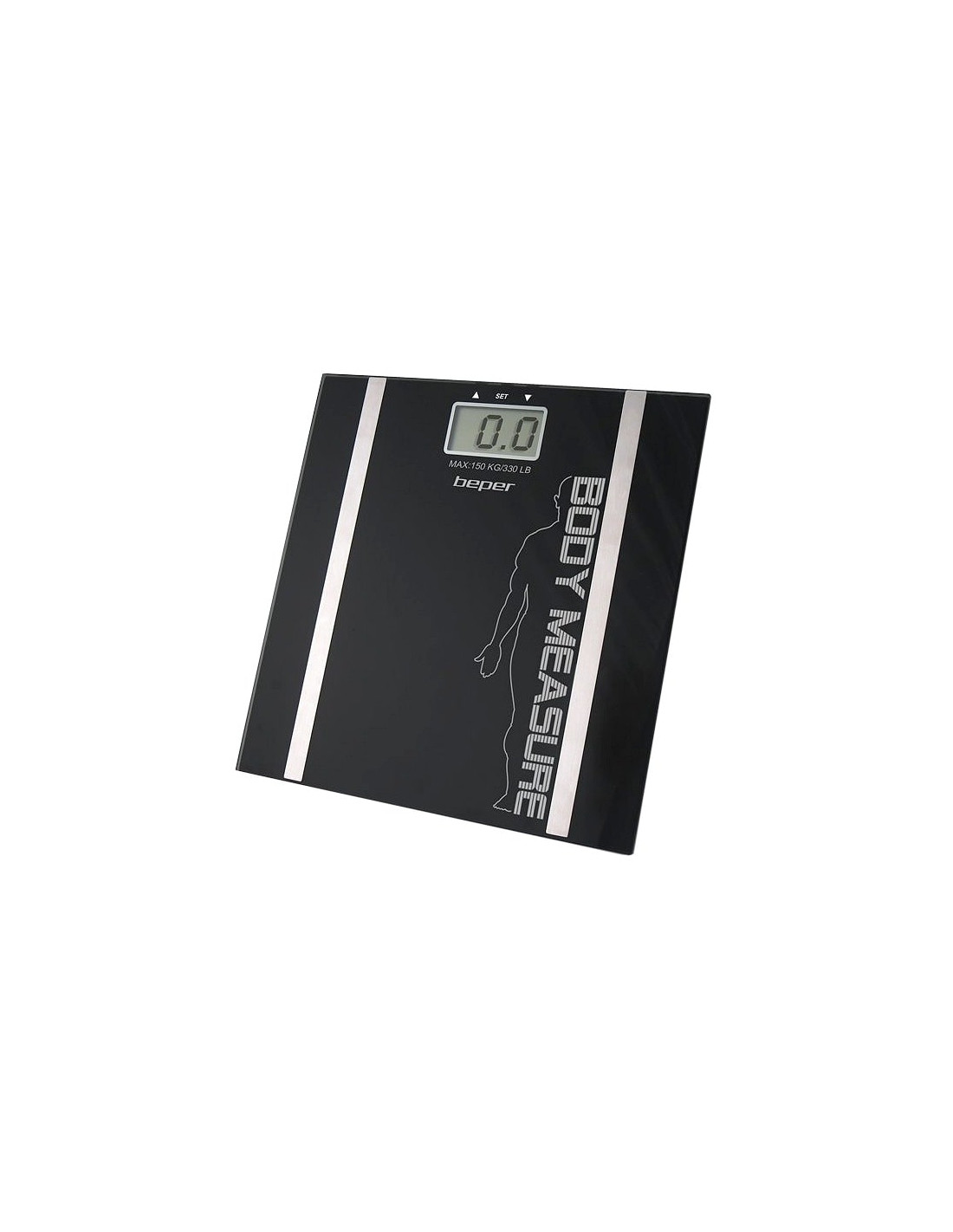 Bilancia pesapersone elettronica con pedana in vetro temperato spessore 6mm - Inserendo i propri dati calcola: massa ossea - massa muscolare - percentuale di liquidi - 10 memorie - Portata massima 150 Kg - Display LCD - Spegnimento e azzeramento automatico - Batteria inclusa
