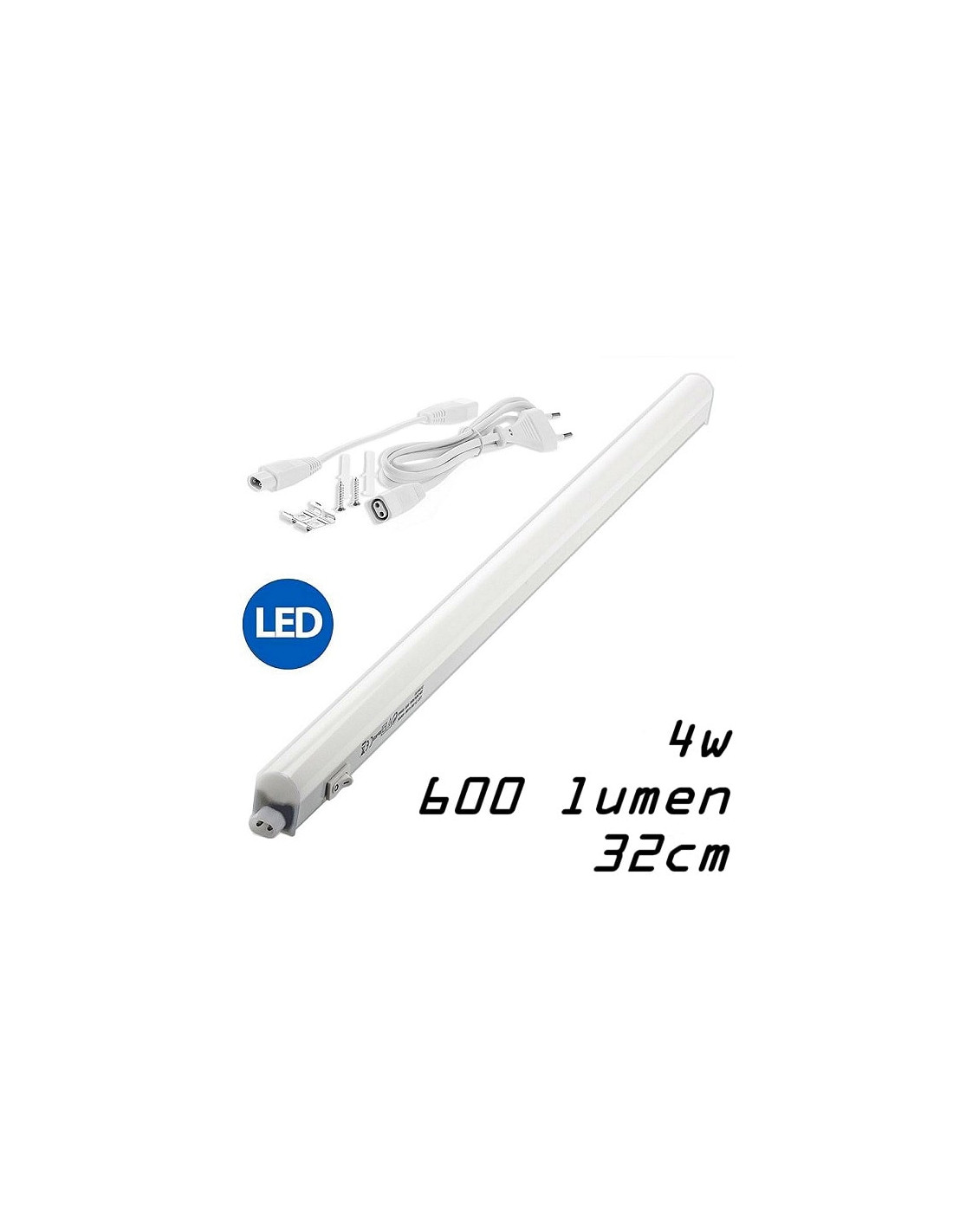 Collegabile in serie - Completa di accessori - Luce fredda 4000°K - 480 lumen - Lunghezza cavo 1.5m - Dimensioni 313x22x30mm
