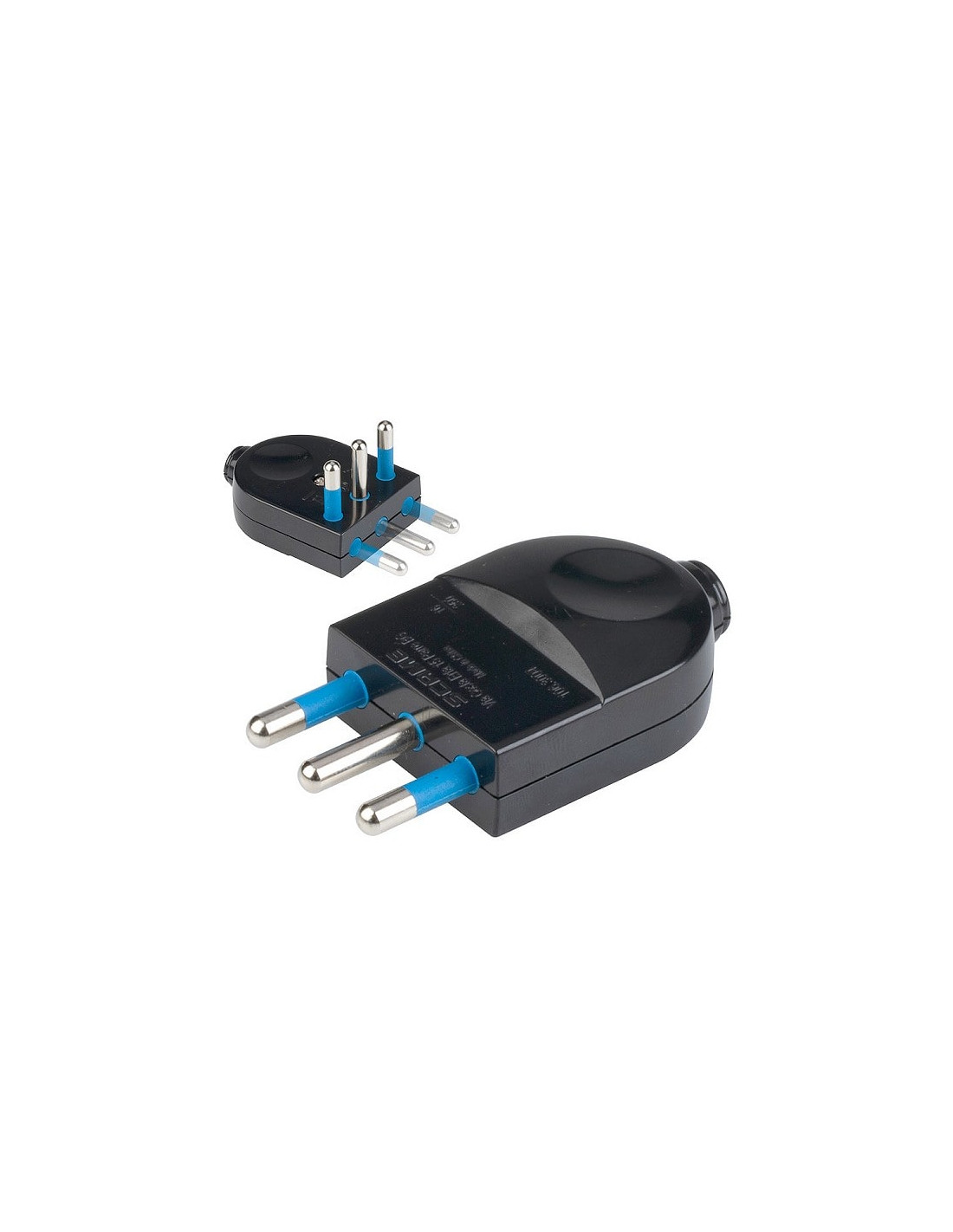 Spina orientabile 16A 2P+T - Fermacavo isolante a vite - Gli spinotti orientabili permettono due diverse configurazioni di cablaggio e di inserimento a muro per risparmiare spazio - Norma IMQ
