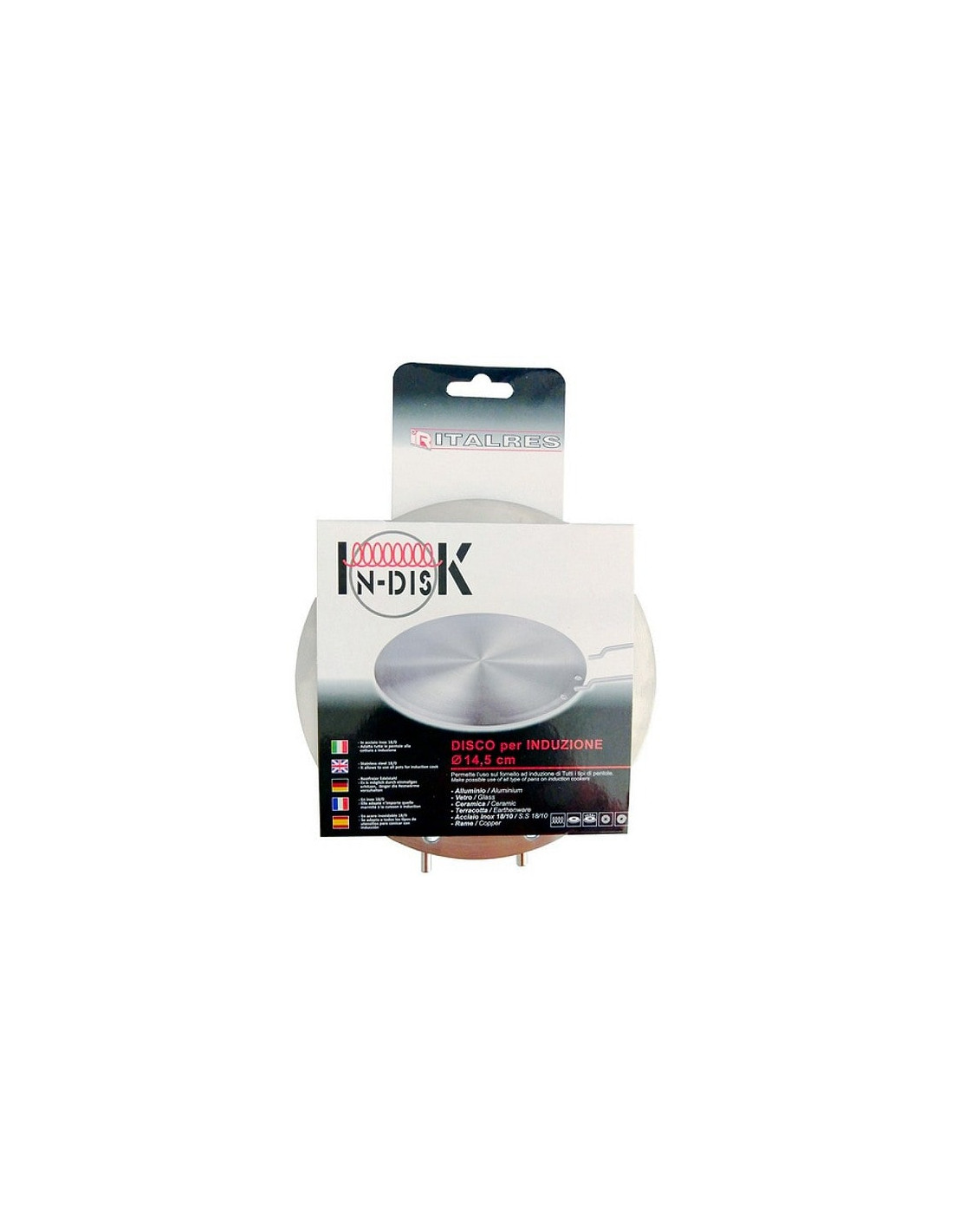 Permette l'uso sul fornello ad induzione di tutti i tipi di pentole: alluminio - vetro - ceramica - terracotta - acciaio inox - rame - Diametro 145mm
