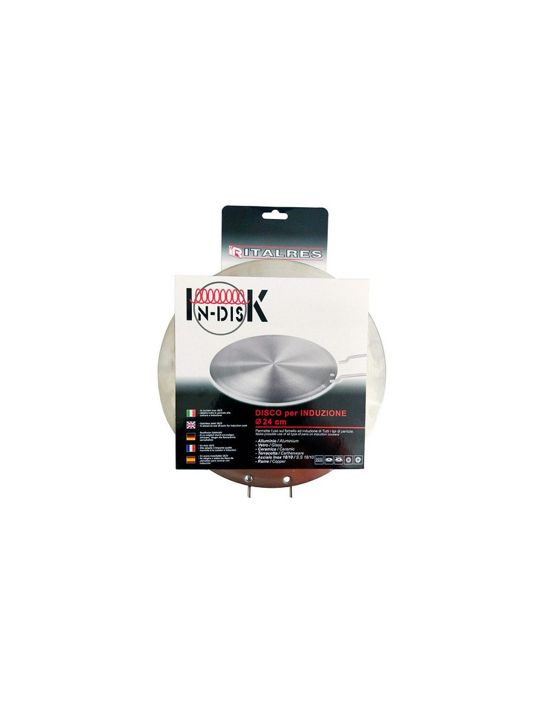 Permette l'uso sul fornello ad induzione di tutti i tipi di pentole: alluminio - vetro - ceramica - terracotta - acciaio inox - rame - Diametro 240mm