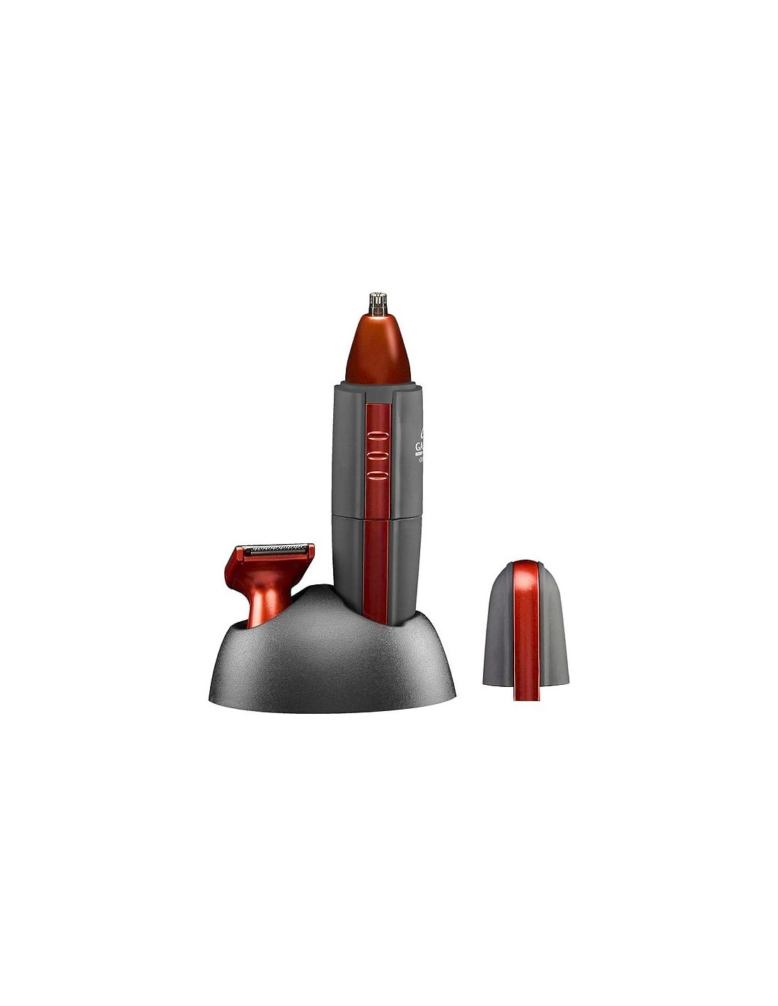 2 funzIoni di taglio: trimmer per naso/orecchie e peli superflui - AlimentazIone a pile 1 AA - Testine lavabili - Lame in acciaio inossidabile - Impugnatura soft touch - Luce a LED - Accessori: base porta accessori e spazzola per pulire