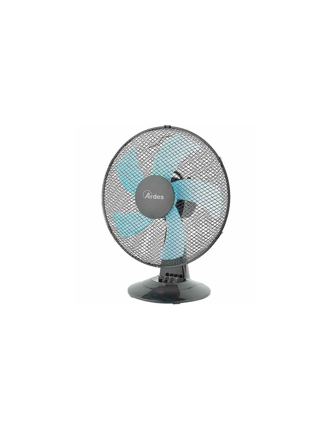 Ventilatore da tavolo Ø 40cm - 5 pale colorate in semitrasparenza turchese - Griglia a nido d’ape - Oscillazione laterale automatica - Potenza 50W - 3 velocità - Certificato ROHS - Disponibile solo per la Sardegna